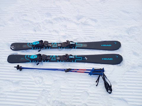 ![]() ![]() 駐車場も凍っていました。 今日の目的は足慣らしと新しいスキー板のチェック。HEADのSHAPE V1 130cm 昨シーズンモデルです。 |