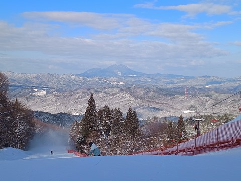 ![]() ![]() 朝一のゲレンデコンディションは、圧雪の上に新雪でイイ感じ。 第2リフト降り場横からの三瓶山の眺め。クッキリ見えました。 |