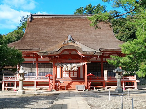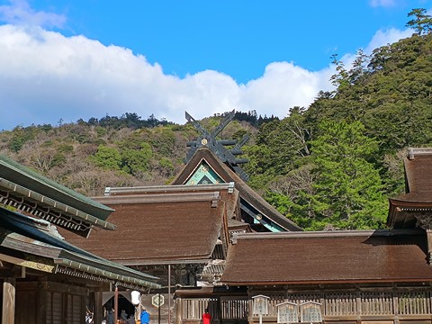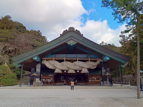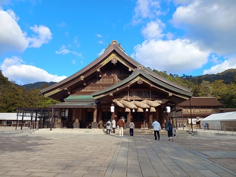 ![]() ![]() 島根県出雲市大社町の出雲大社(いずもおおやしろ)です。 最初に拝殿にお参り。 |